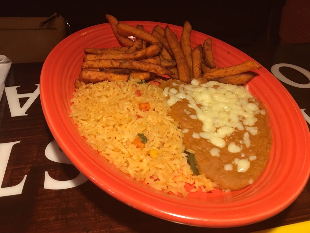 14" grilled burrito filled with, your choice of grilled chicken, carnitas (pork) or steak, grilled peppers, onions, tomatoes, broccoli, cheese, and roasted salsa. Served with rice, fried beans, and sweet potato fries.