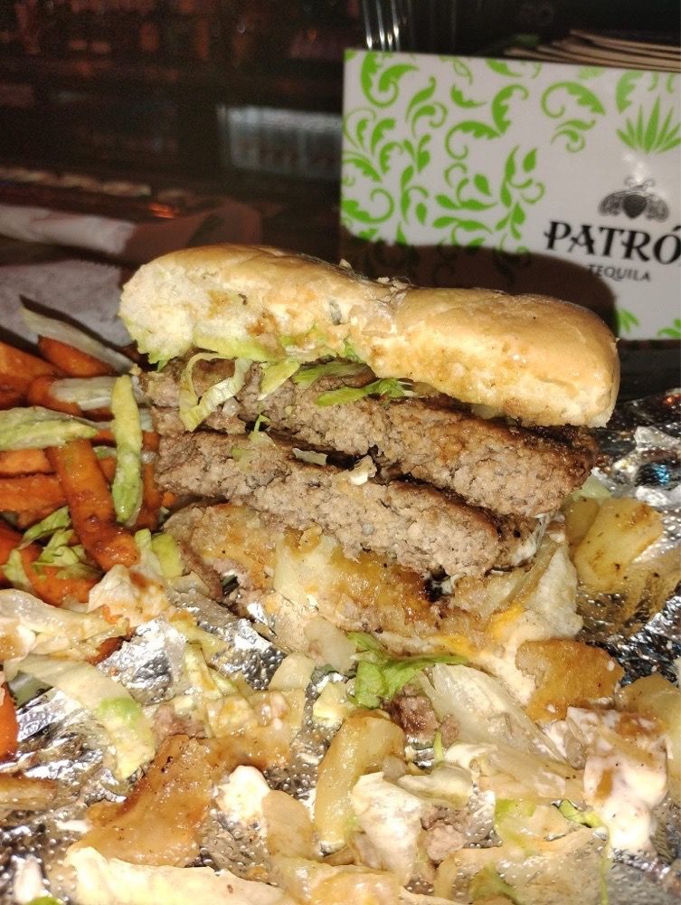 2 black Angus patties grilled to your choice. Topped with onion rings, pineapple, sliced avocado, lettuce, tomato, mayo and BBQ sauce.